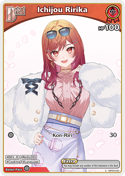 It can be added to your hand with the SP Oshi skill “Cute! Positive! Genius!” of hBP04-003 [Ichijou Ririka], or returned to your hand with the bloom effect “Struggle Meal Chef” of hBP04-035 [Ichijou Ririka], making it a core card that sees frequent use throughout the match.