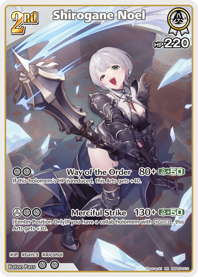 Attach it to hBP02-017 [Shirogane Noel] or hBP05-012 [Shirogane Noel] to deal significant damage to your opponent’s holomem.