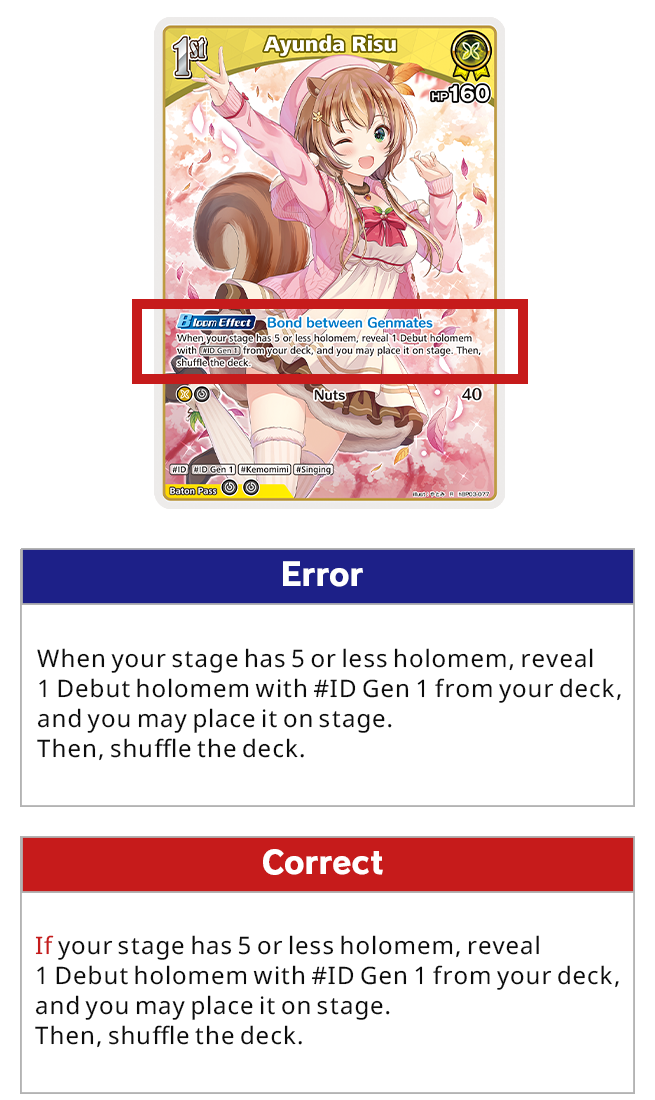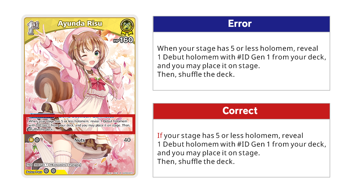 Due to a mistranslation in the card text, we will be issuing a correction.