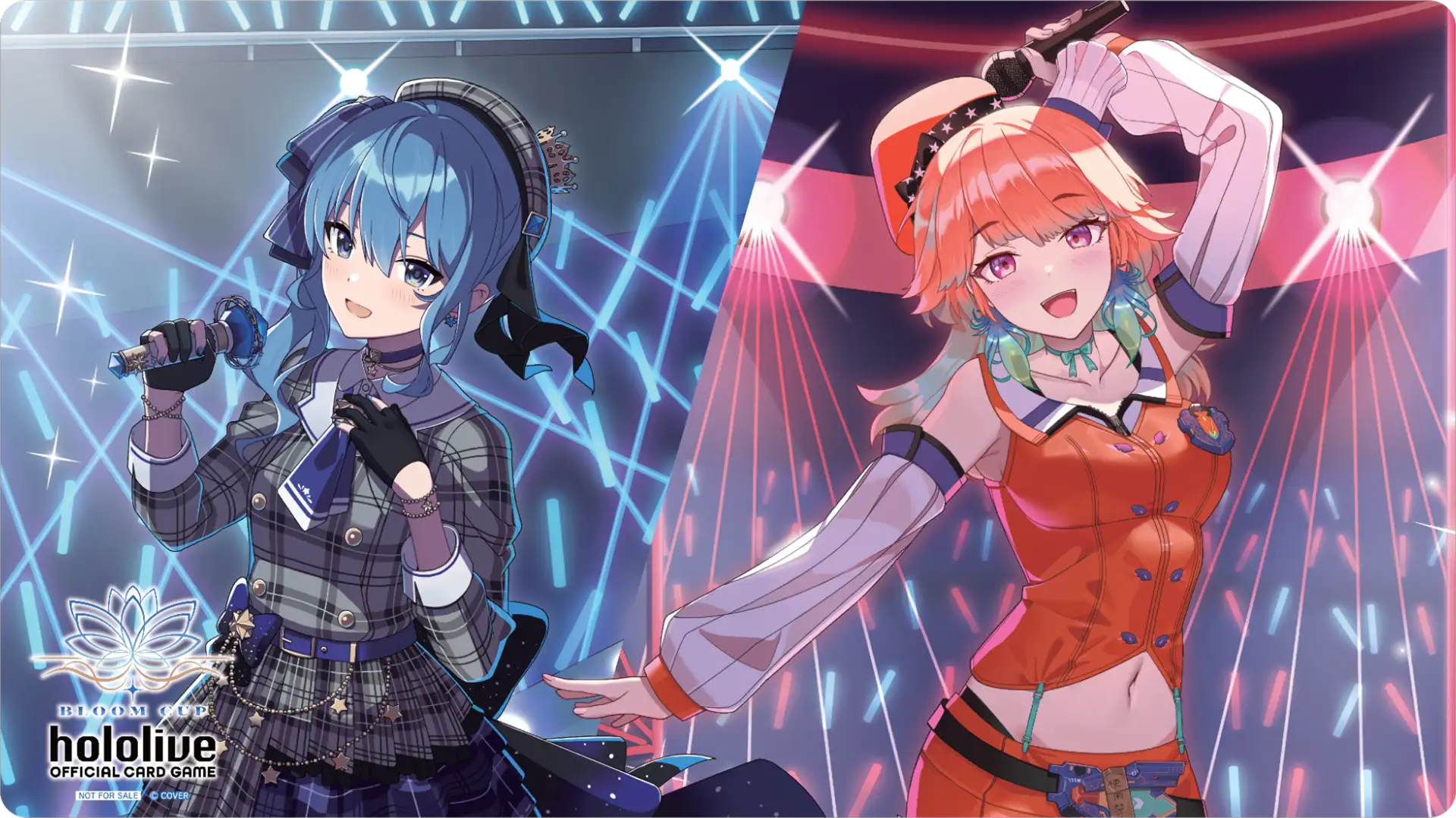 The winner will receive an exclusive playmat featuring Hoshimachi Suisei & Takanashi Kiara.